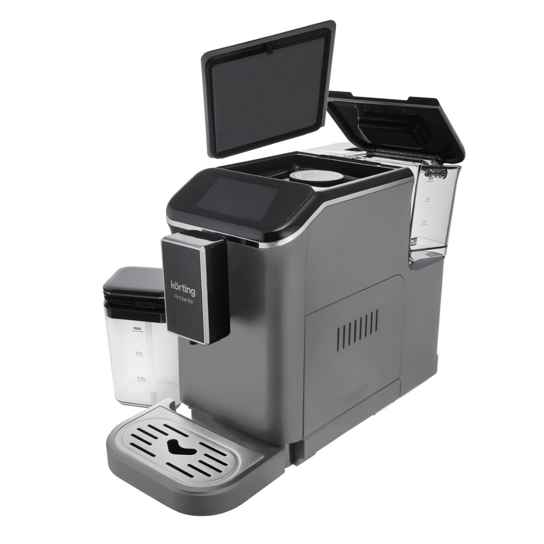 Кофемашина Korting KACM 2003 Andante выполнена в серебристом цвете и предназначена для приготовления напитков как с использованием молотого, так и зернового кофе. Оснащенная итальянской помпой с давлением 20 бар, она обеспечивает идеальное извлечение ароматов и вкусов. Модель предлагает индивидуальную настройку с восемью автопрограммами и возможностью ручной настройки, что дает возможность пользователю создавать и сохранять собственные рецепты. Сенсорный экран с видеосопровождением упрощает выбор и управление прибором. Кофемашина предлагает 15 видов помола, а встроенный капучинатор позволяет готовить восхитительные кофейные напитки с молоком всего одним касанием. Резервуар для молока объемом 750 мл, входящий в комплект, обеспечивает дополнительное удобство — его можно размещать в холодильнике для хранения и охлаждения напитка.