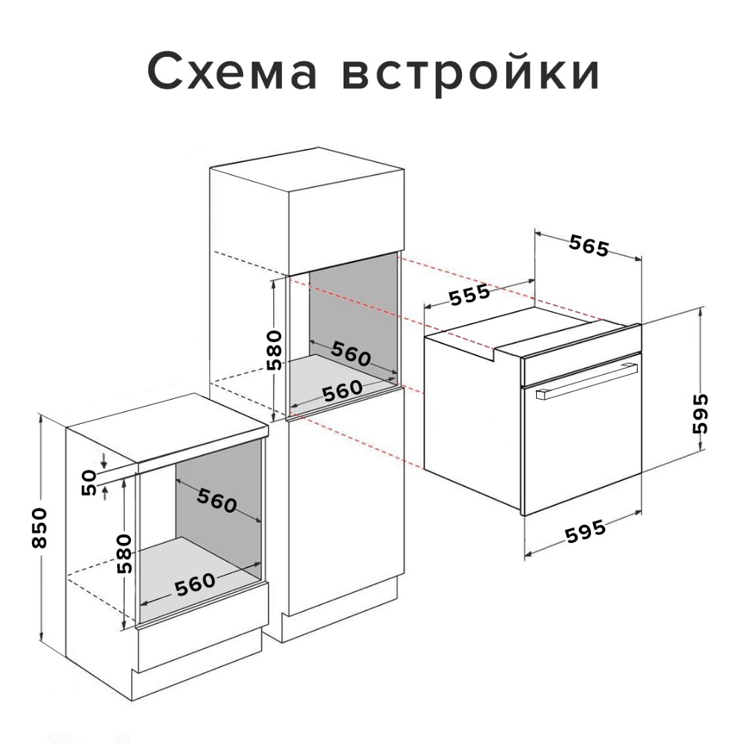 - Ширина ниши для встраивания, мм: 560