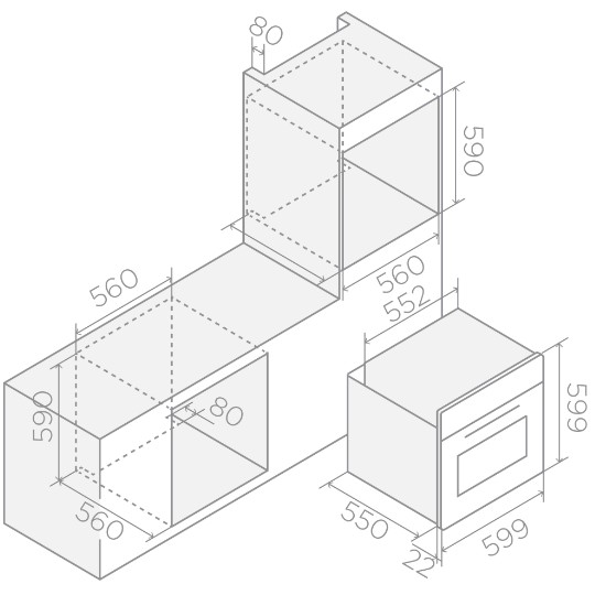 - Размер ниши (В*Ш*Г): 590*560*560 мм