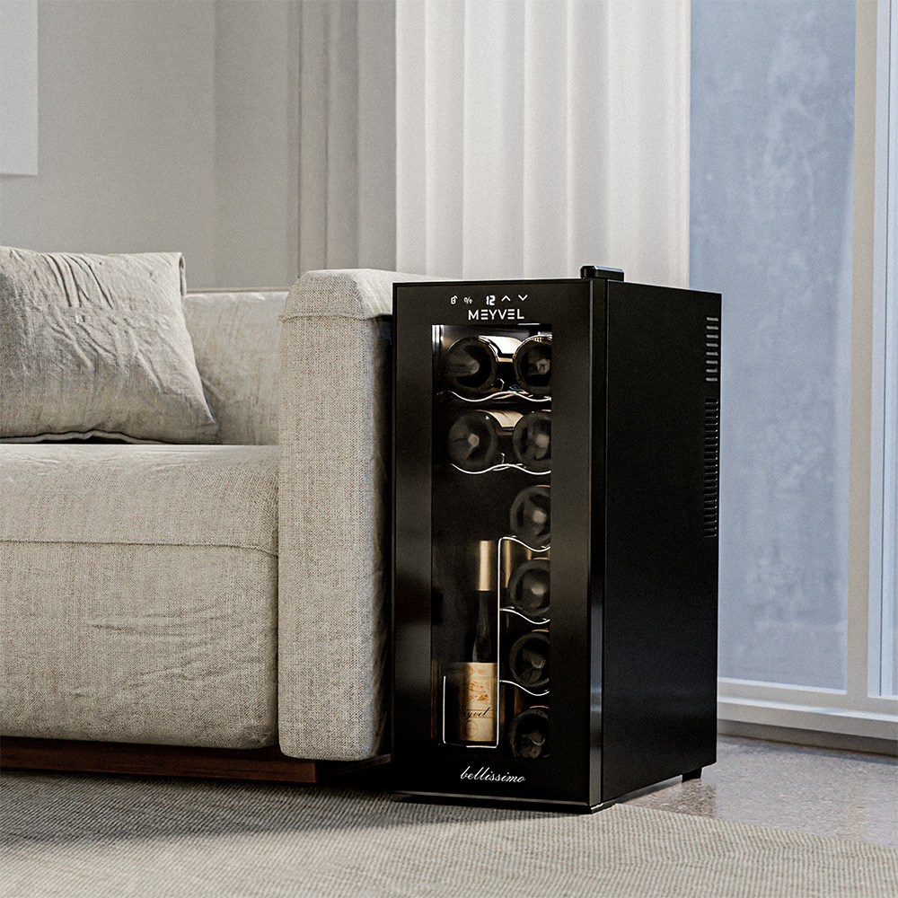 Инженеры компании Meyvel разработали новую модель отдельностоящего винного шкафа MV12-TBD1. Благодаря компактным размерам данную модель можно разместить практически в любом помещении. Двойное стекло с защитой от прямых УФ-лучей поддерживает качественные условия хранения вина. Для размещения винных бутылок, шкаф оснащен 3 полками из хромированного металла. Одна из полок имеет возможность хранения бутылок стоя.